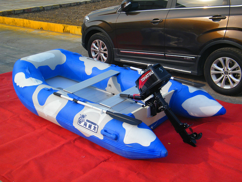 1.請使用我們附贈的腳踏充氣泵給小艇充氣。注意:當您使用腳踏泵給小艇充氣的時候,請不要把氣充得太滿。如果您使用的是電動充氣機,那么在即將充滿的時候請換用腳踏充氣泵,以便控制小艇內的氣壓超出合適的范圍。